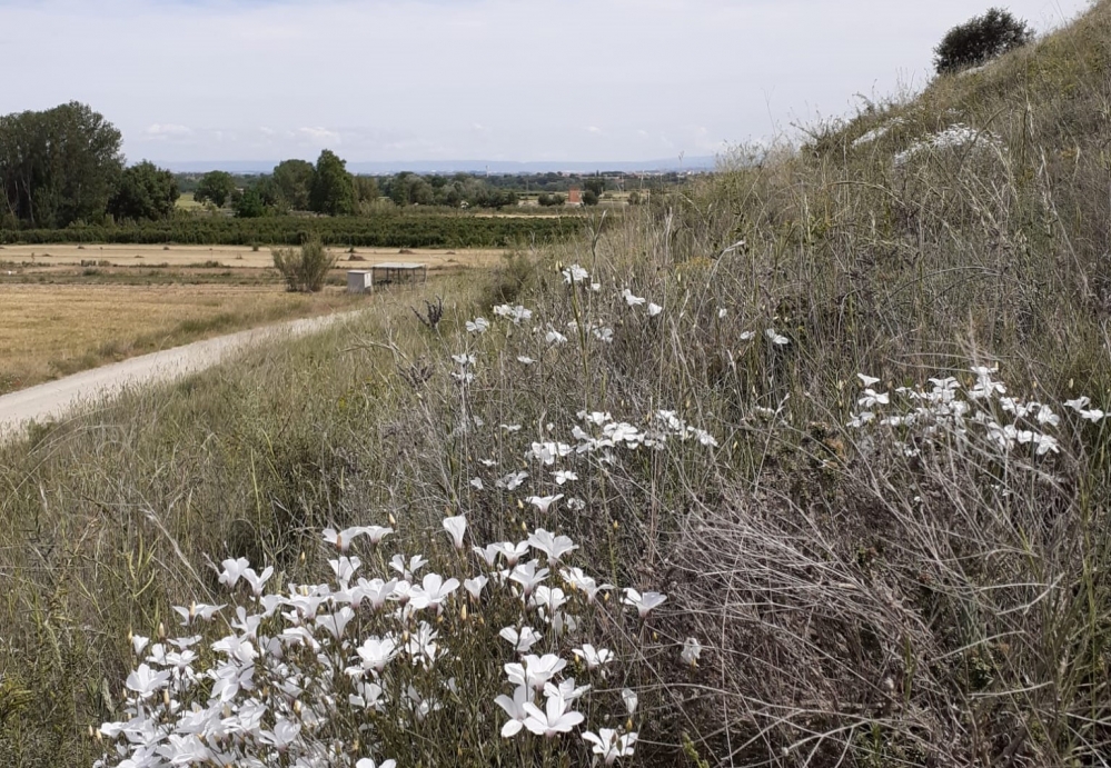 El recorregut mostreja conreus abandonats, comunitats ruderals de la terra baixa, fruiterars i comunitats més naturals d'ambients molt àrids, com ara timonedes i prats de teròfits. Les condicions d'aridesa i calor extrema al període estival condicionen fortament la comunitat de papallones.