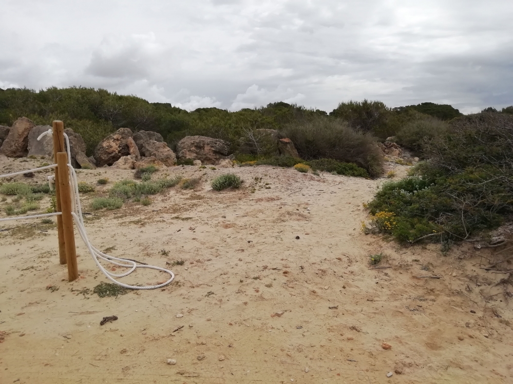 Tot el recorregut segueix caminets a l'interior del sistema dunar de fàcil accessibilitat, amb una part situada dins del domini públic marítimoterrestre, i una altra dins de propietat privada a la que s'ha demanat permís per accedir-hi.
