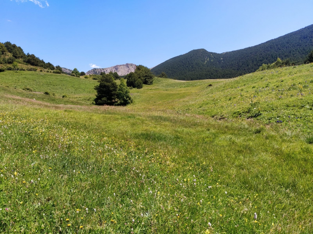 El recorregut transcorre per prats de pastura i de dall, bosc de ribera, un patamoll lineal en zona de pastura, un torrent, un prat de dall amb mollera de bistorta, i clarianes de solana en fase de tancament.