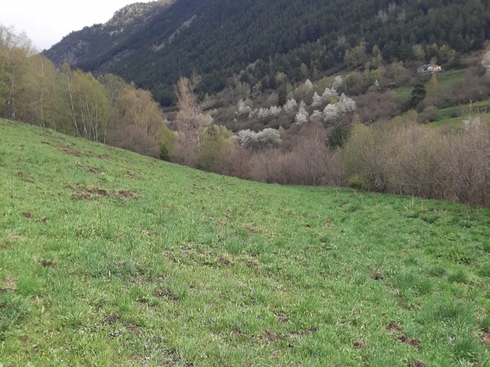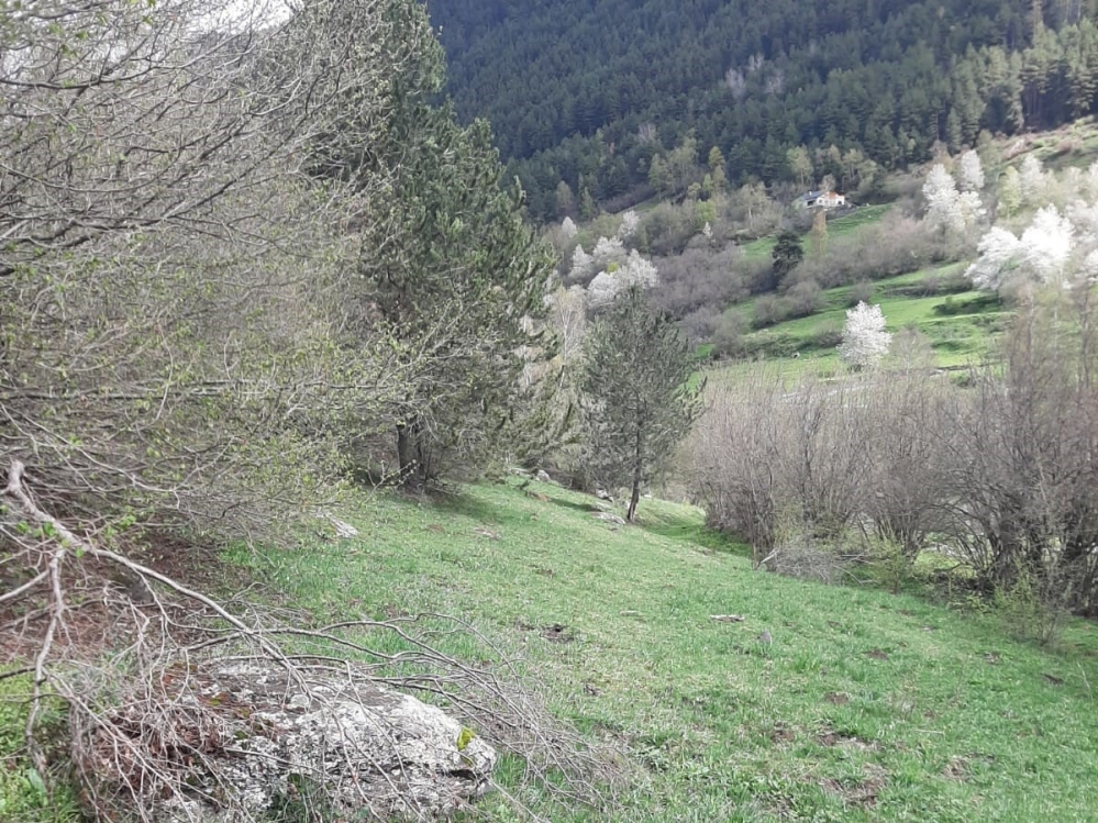 El transsecte comença amb un relleu accidentat, prop d'un camí una mica transitat i a 25 m del riu. Hi ha coníferes i avellaners sobretot. La secció 2 passa per un prat paral·lel a un caminet una mica transitat, que queda poc exposat al vent i està flanquejat per arbres (coníferes i avellaners). La secció 3 travessa al llarg un segon prat també flanquejat per arbres i no massa exposat al vent. Els arbres també són avellaners i coniferes (pi roig). La secció 4 recorre un camí que a l'estiu queda tancat (ben cobert) per les fulles d'avellaners i algun roure, i que fan ombra quasi completament al llarg del seu recorregut. Finalment, la secció 5 travessa un prat obert sense arbres i exposat al vent.