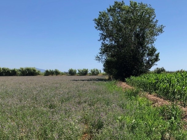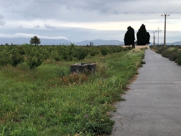El recorregut transita bàsicament per camins agrícoles, entre conreus i també a tocar del bosc de ribera del riu Fluvià, llevat de les seccions 7 i 8, que transcorren fora de camí entre prats mediterranis de matollars baixos. Els camins entre conreus presenten una alta varietat: fruiters abandonats (seccció 1), intensius de blat de moro (secció 2), d’alfals (secció 3), fruites de conreu tradicional (seccions 4 i 10) i pomers de DO controlada (secció 5).