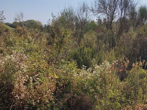 La secció 7 és a tocar d’un embassament d’aigua freàtica que aflora d’una antiga extracció d’àrids. La bassa és força consolidada i presenta una alta biodiversitat tal com es pot observar per la quantitat i varietat de papallones, vegetació diversa i nombrosos vertebrats, mentre que la secció 8 és de brolla amb romaní, llistons i estepes, força feréstega i de trànsit dificultós.