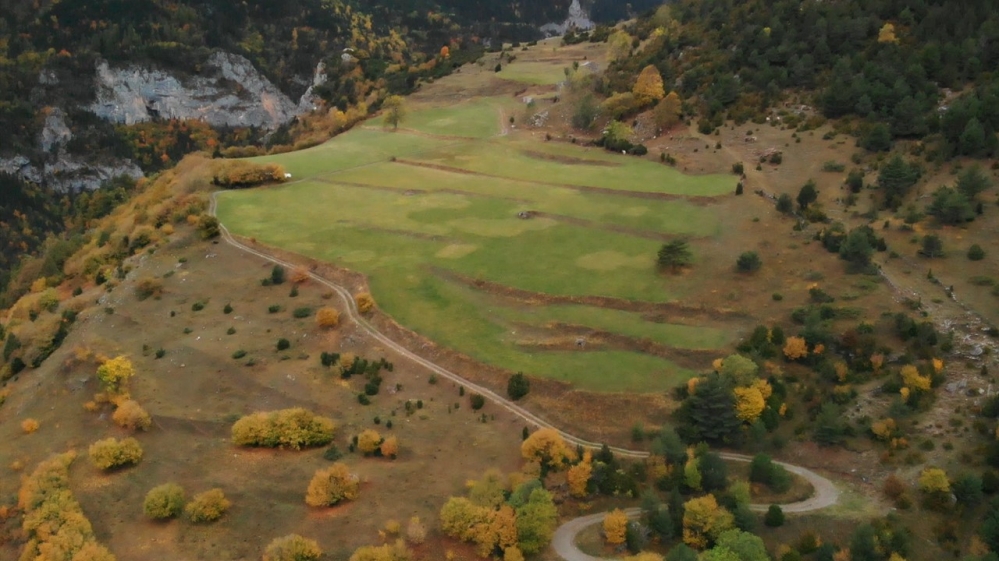 El recorregut passa per la zona on abunden prats de pastura en alçada, calcícoles i mesòfils, i també prats de dall. Es tracta d'un espai amb pendent i el circumden zones de pi roig, boixeda i avellanosa.