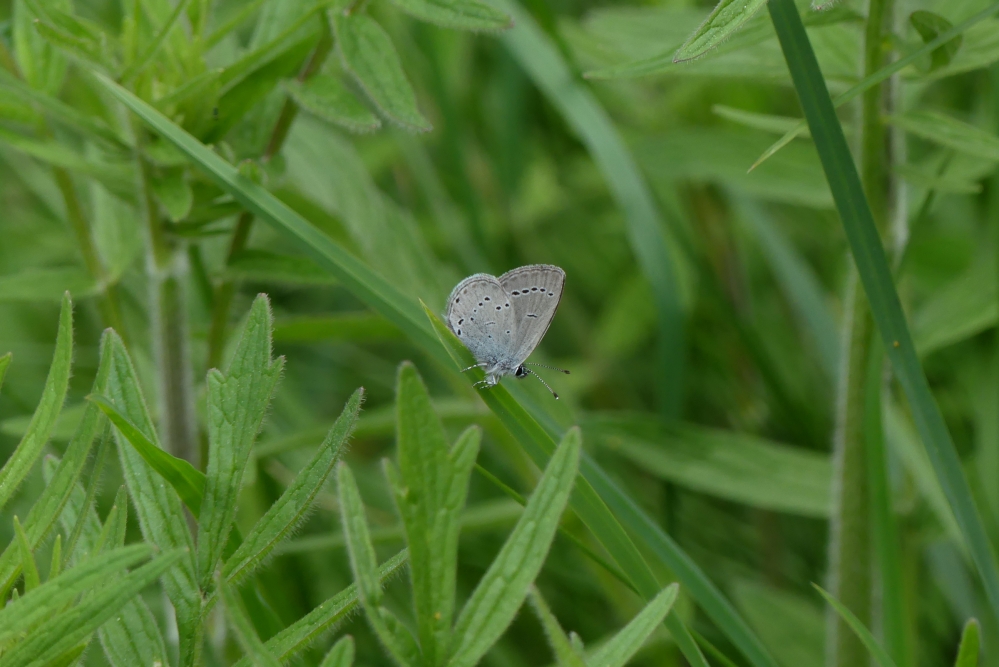 Licènid menut, el més petit de la nostra fauna. Sense dimorfisme sexual aparent, tant el mascle com la femella són marrons, a vegades amb una escassa difusió d’escates blaves a la base de les ales. Revers grisenc amb petits punts a les ales anteriors i posteriors, sovint amb un petit punt negre al costat del marge de les ales posteriors. A Catalunya es troba àmpliament distribuïda, des del nivell del mar fins els 2.400 m. És absent, però, de les grans planes agrícoles de la Depressió Central, Delta de l’Ebre i Alt Empordà, i a la franja litoral i a la terra baixa en general apareix molt localitzada i escassa.