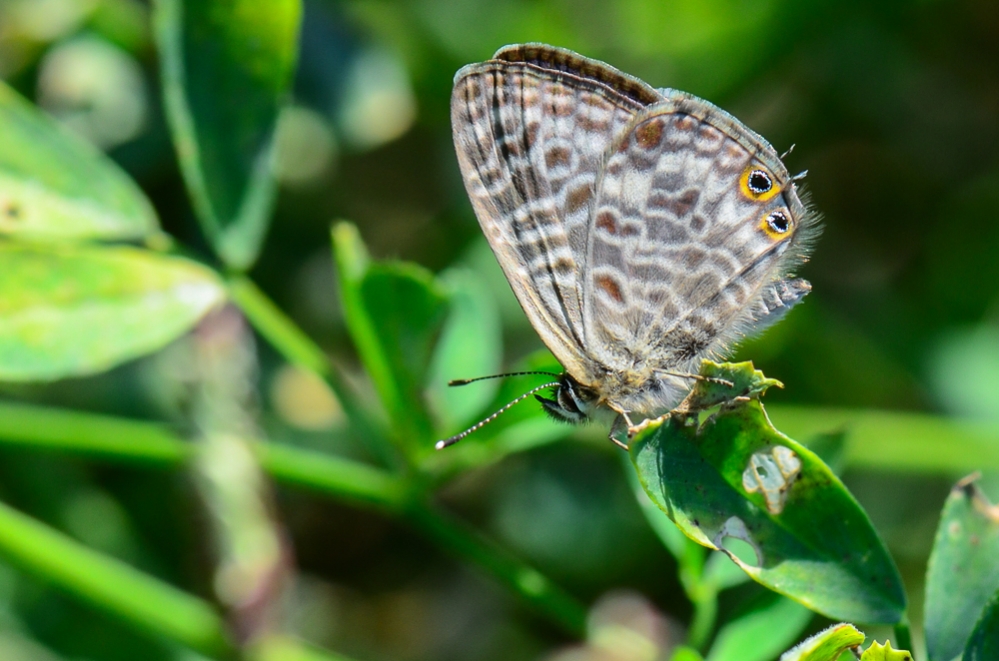 Licènid molt comú a Catalunya, de mida petita, amb una cueta a l'ala posterior, i amb mascles de color blau fosc metal·litzat i femelles brunes amb escates blaves més o menys abundants al centre de l’ala anterior. El revers és gris enfosquit, amb un disseny molt característic de ratlles ondulades blanques i dos punts negres encerclats de blau als costats de la cueta. Es pot confondre fàcilment amb la blaveta dels pèsols, Lampides boeticus, que tanmateix és generalment de mida més gran i presenta una ampla banda blanca submarignal al revers de l'ala posterior. La blaveta estriada és una papallona migradora, ben distribuïda per tot Catalunya excepte als Pirineus, on apareix molt més escassa. El seu rang altitudinal va des del nivell del mar fins els 1.000 m, essent molt ocasional a més alçada.