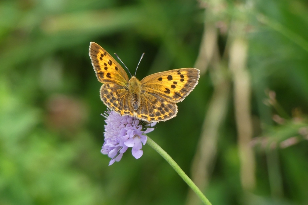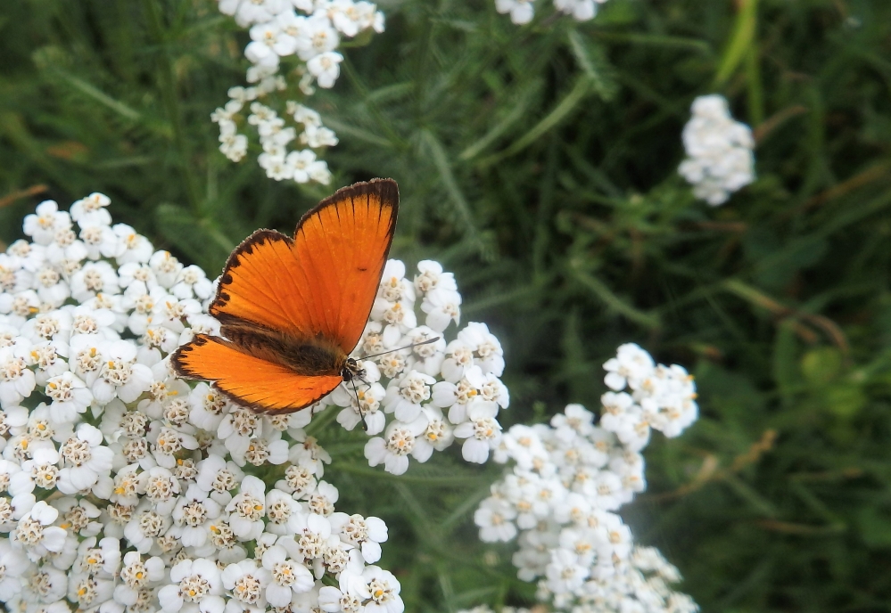 Espectacular licènid d’alta muntanya. El mascle és inconfusible, amb l’anvers de color taronja metàl·lic viu vorejat d’un marge negre; la femella és similar a la del coure tornassolat, Lycaena alciphron. En ambdós sexes, el revers de l'ala posterior té una sèrie de taques blanques postdiscals i punts negres sobre un fons gris verdós, que permet diferenciar-la bé d'altres espècies del gènere. A Catalunya la seva distribució es restringeix als Pirineus, on és una espècie comuna i ben estesa des de poc menys de 1.000 m fins l'entorn dels 2.200 m.