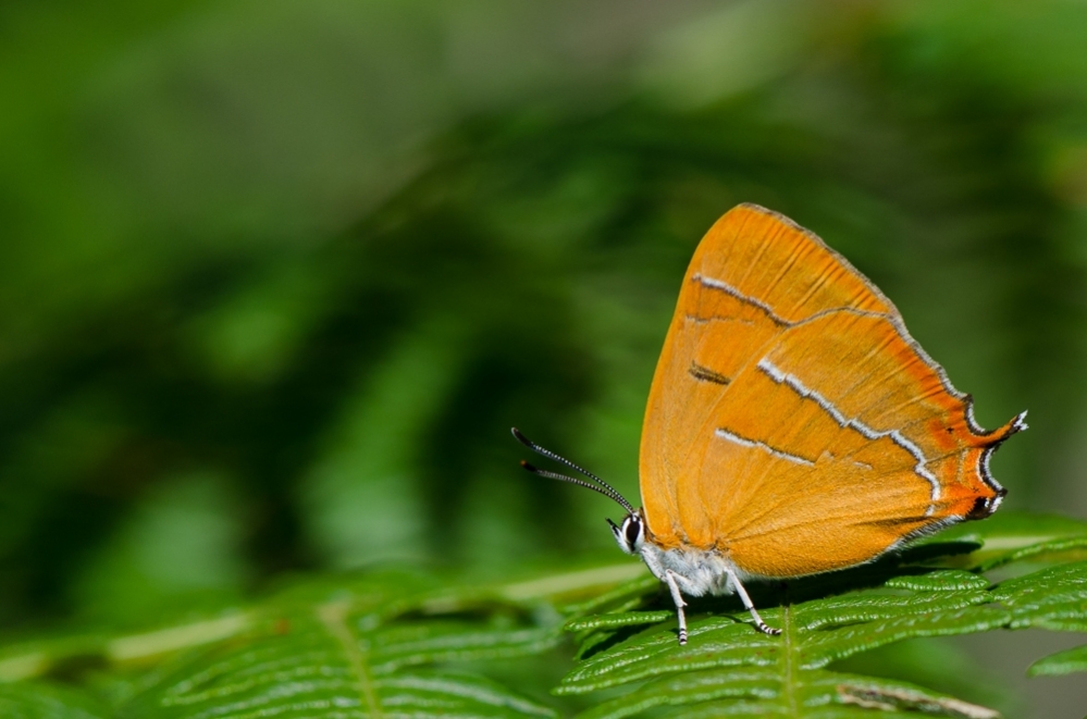 Juntament amb Phengaris arion, és el licènid més gros de Catalunya. Fàcil d'identificar pel color marró ataronjat i les línies blanques discals al revers alar, i també per una cueta ben visible a les ales posteriors. Marcat dimorfisme sexual a l'anvers: els mascles són de color marró fosc uniforme mentre que les femelles tenen unes vistoses bandes taronges a la zona discal de les ales anteriors. Viu a la meitat nord del país, ocupant la major part dels Pirineus, la Serralada Transversal i el Montseny, i penetrant, ja de manera molt local i escassa, a la plana vallesana i a diferents indrets de la Serralada Litoral, com per exemple el Montnegre. Apareix entre els 300 i 1.500 m, sent molt excepcionals les observacions a les cotes més baixes o a prop de la costa.
