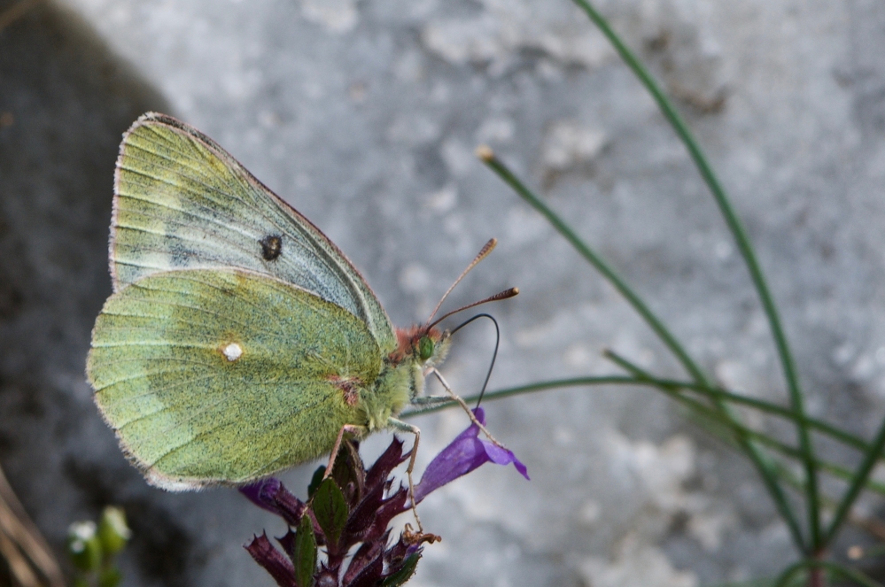 Espècie del gènere Colias, que es distingeix de C. crocea i C. alfacariensis per l'abundant presència d'escates fosques sobre un color de fons verdós en el mascle i blanc en la femella. La seva distribució a Catalunya és estrictament pirinenca, amb poblacions força locals entre els 1.500 i 2.800 m.