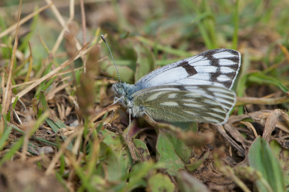 Papallona blanca, semblant a la pòntia comuna però amb un disseny característic al revers de les ales posteriors, consistent en taques postdiscals en forma de punta de fletxa delimitades per les venes gris verdoses. És una espècie exclusiva de l'alta muntanya, que es troba ben distribuïda pels Pirineus amb poblacions reproductores per sobre dels 2000 m. Encara que ocasionalment es poden veure exemplars divagants a altituds inferiors, en prats subalpins i al Prepirineu, és un element típic dels cims més alts.