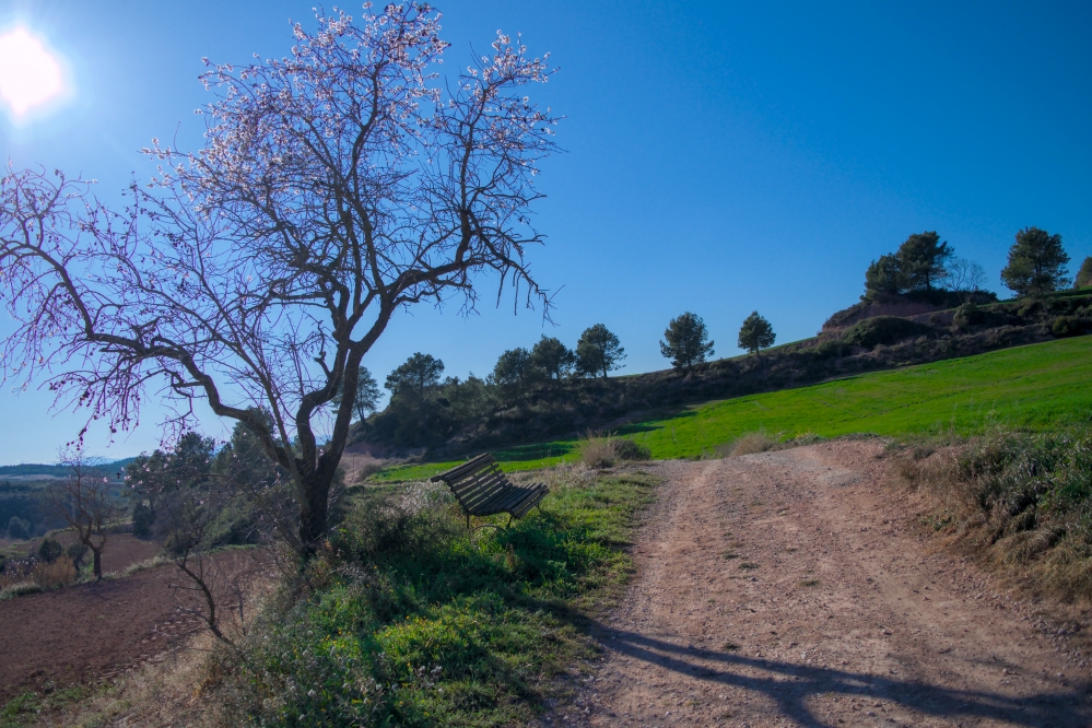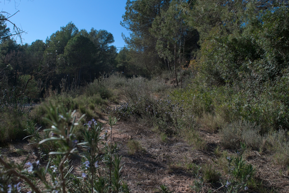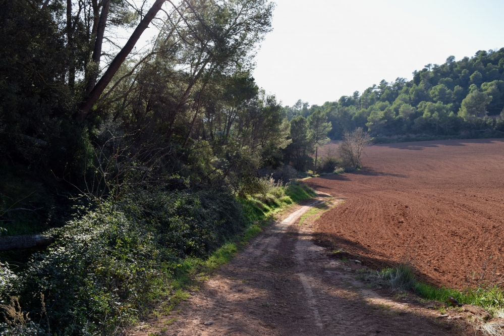 Tot el recorregut transcorre per ambients mediterranis continentals, sobretot per pinedes de pi blanc (Pinus halepensis) amb sotabosc de brolles calcícoles, formades per foixarda (Globularia alypum), romaní (Salvia rosmarinus), farigola (Thymus vulgaris), bruc d’hivern (Erica multiflora) i llentiscle (Pistacea lentiscus), o zones ruderals, habitualment amb camps de conreu a la vora. Malgrat això, també hi ha alguns espais oberts, amb diverses herbàcies: ravenissa blanca (Diplotaxis erucoides), Malva sp., ravenissa groga (Erucastrum nasturtiifolium), Veronica sp. i lletsó (Sonchus sp.), que fan la funció ecològica de prat malgrat acostumar a ser zones de camps de conreu abandonats. En algun punt trobem vegetació i estructures ecològiques més típiques de zones humides, com les bardisses amb esbarzers (Rubus sp.) i presència de Vinca.