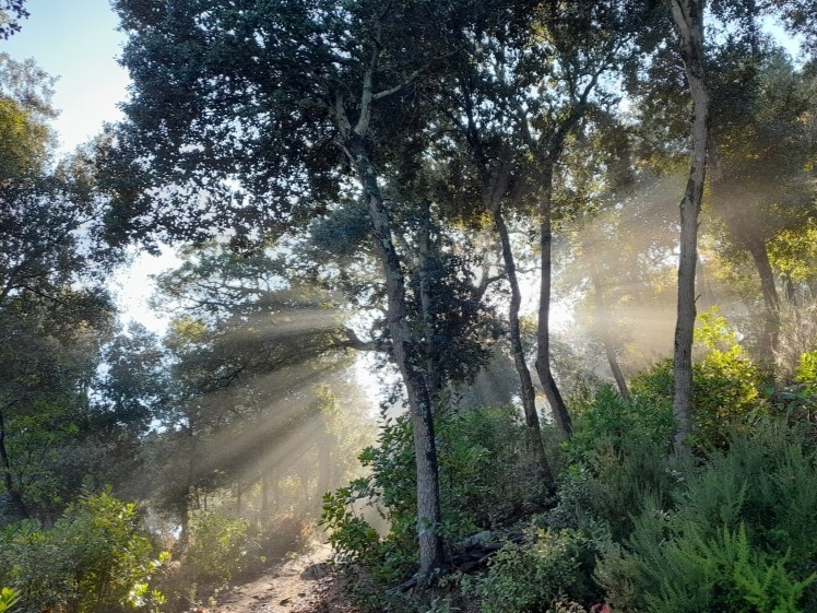 El transsecte transcorre majoritàriament per ambients d'alzinar mediterrani, començant amb dues seccions més obertes, dominades per les brolles, i continuant per una alternança de camins i corriols on el bosc n'és el protagonista.