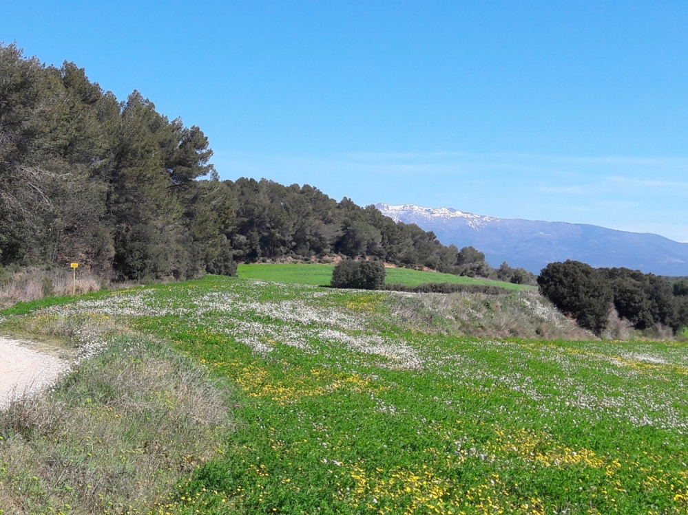 [The map shows the transect route and the layout of the different sections. The background photograph corresponds to the 1:5000 orthophoto from the Cartographic Institute of Catalonia (ICGC).]